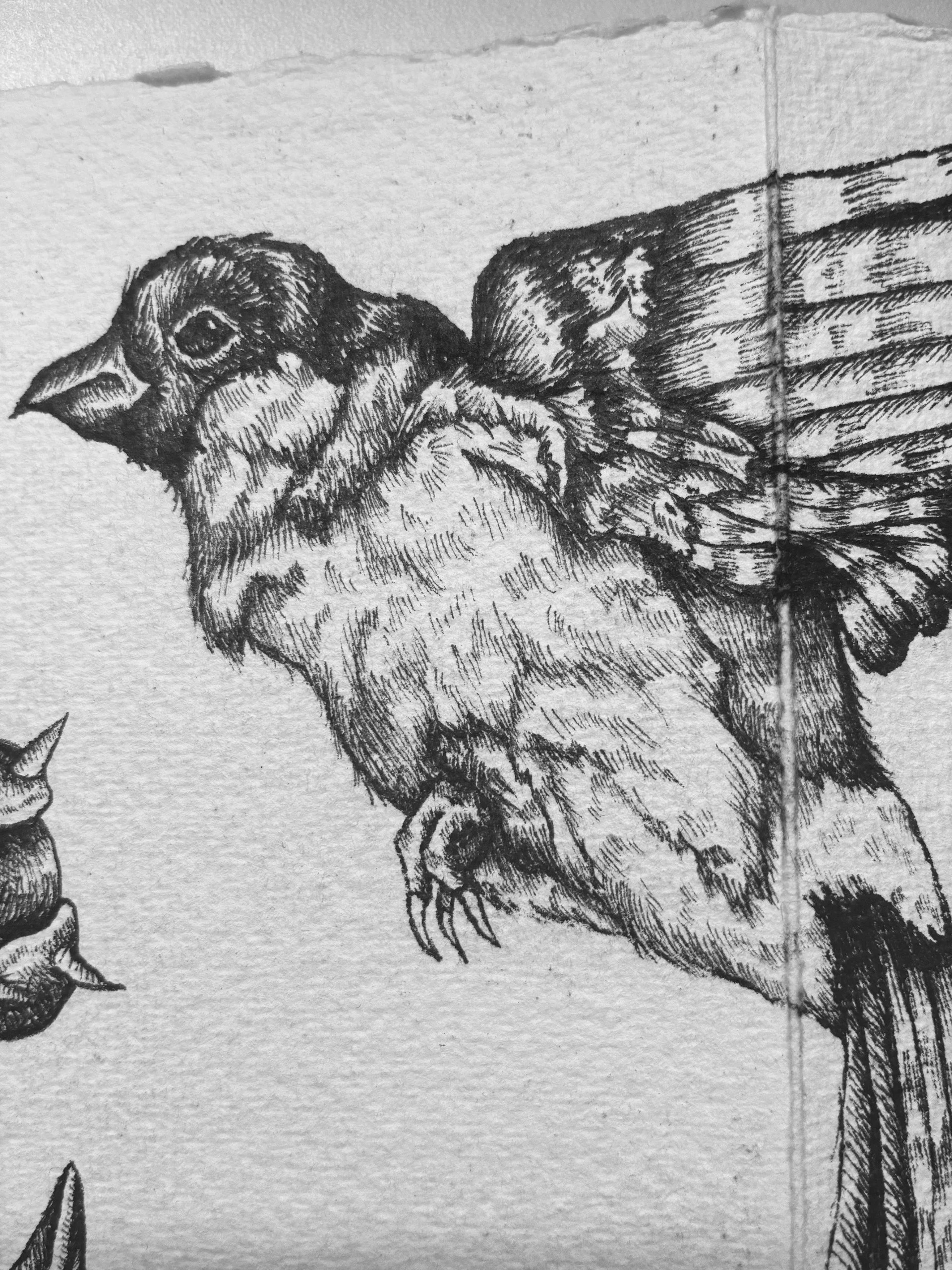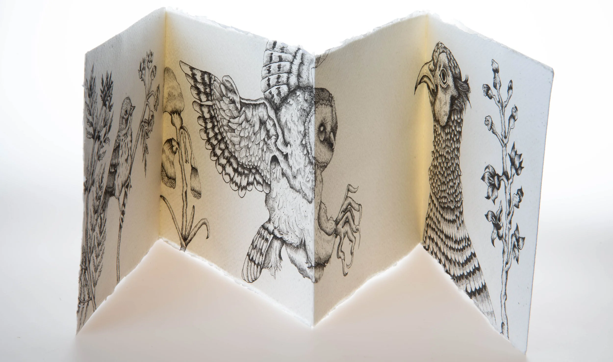 This was a project that I’ve wanted to create for some time now. I love rendering different types of birds, so I decided on a project where each concertina book would feature a different habitat in the UK, with different birds and flora that occupied said habitat.